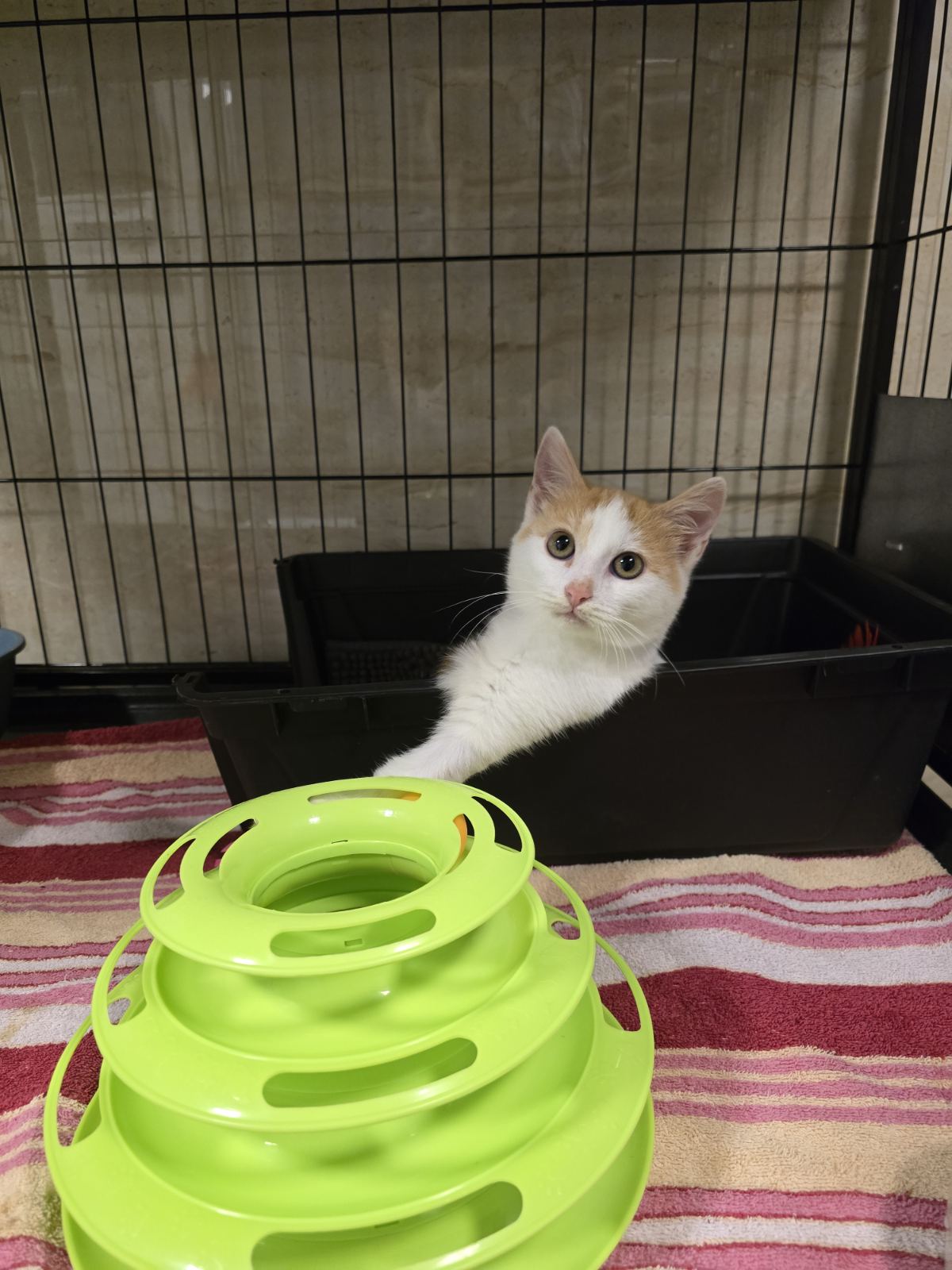 Toto Pripeljali so nam ga zapakiranega v škatlo od Toto izdelkov. S strahom smo odlepili selotejp in v škatli zagledali prestrašenega... IŠČE BOTRE, IŠČE DOM, muca, starost manj kot 1 leto