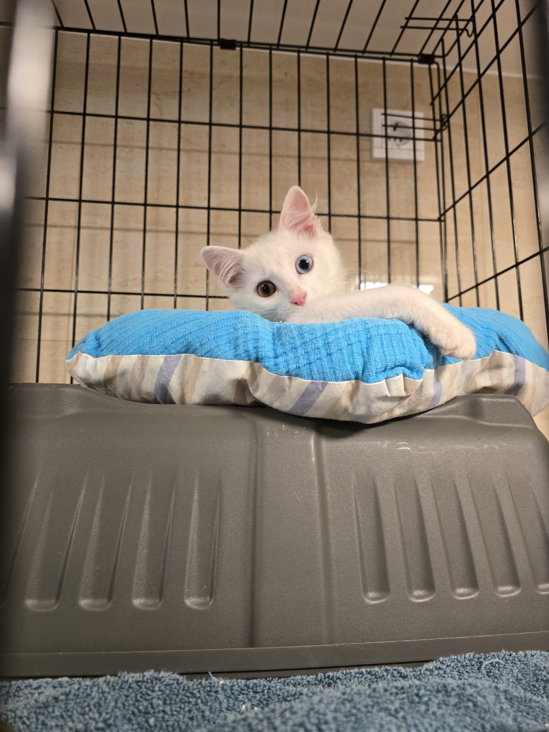Bella Bella je posebna muca z različnimi očesi. Je zelo živahna in igriva. POSEBNOSTI: – primerna za osebe, ki nimajo izkušenj z mucami – ni primerna za domove z zelo majhnimi otroci OpisDate:4. avgusta, 20259. septembra, 2025Categories:V novem domuOsnovni podatkiSpolsamecStarost ob sprejemu12 tednovKraj najdbeVranskoDatum sprejema12.7.2025